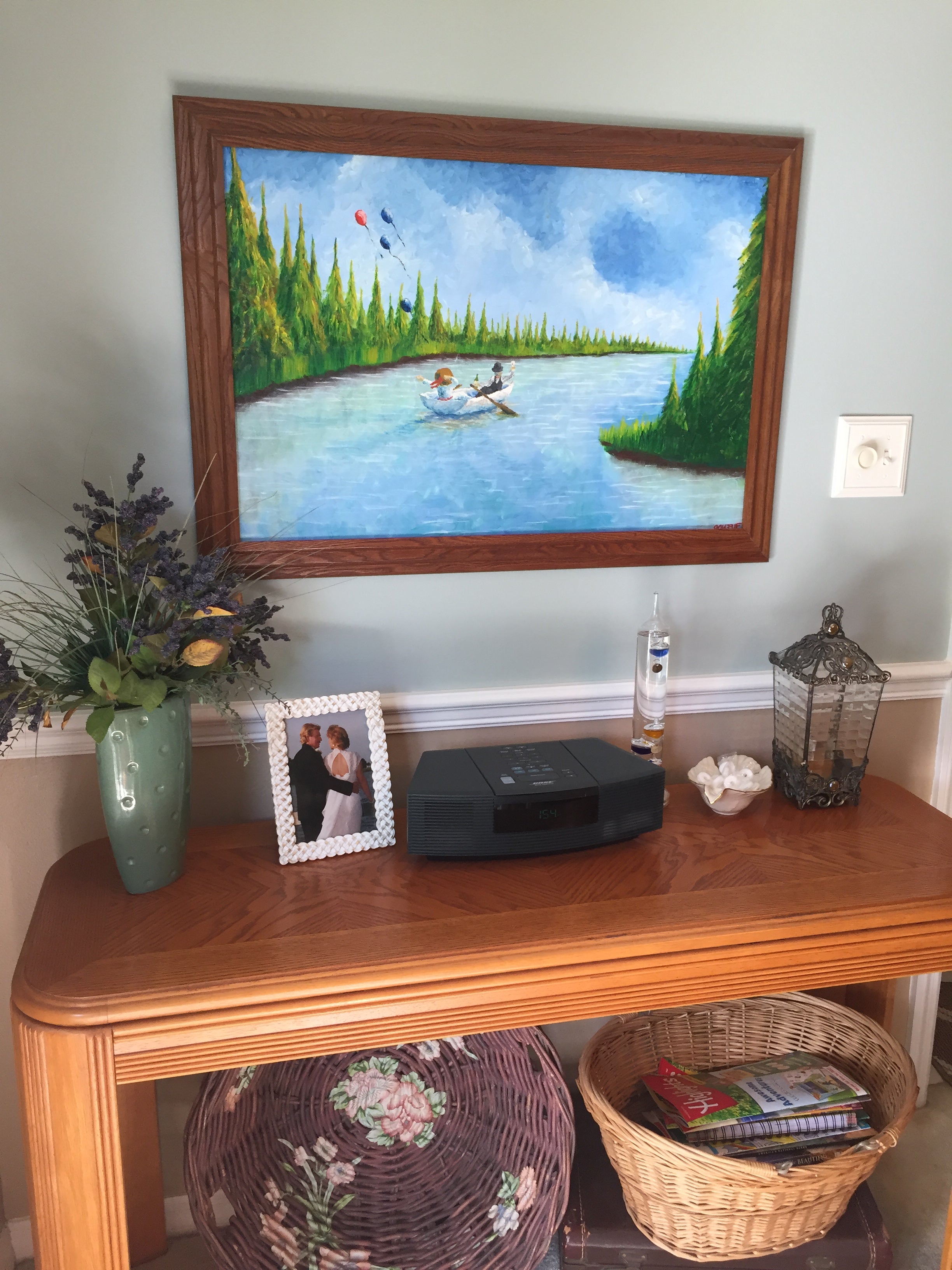 Carefree! That’s the mood & sensory reaction invoked deep within me when I look at this piece of art. ...harmony both within & without – an overall deep sense of tranquility... I look at this painting, & I’m there! It is for these reasons that this, an early exploratory piece by John, will forever be priceless to me.